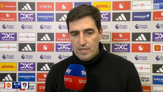 英超第16轮上演了一场进球大战,曼联主场4-4与伯恩茅斯打平。赛后,樱桃军团主帅伊劳拉接受了天空体育的采访。谈4-4“很难解释。我想对中立球迷来说,这是一场精彩的比赛,什么都有。有些时刻你觉得我们要输了;有些时刻你又觉得我们掌控了比赛、踢得很舒服。甚至在最后一分钟,我们还有两次非常明显的机会,我当时在想也许我们能赢下这场比赛。最终只拿到1分,在积分榜上意义不大,但我认为今天我们既能看到积极的一面,也能看到不足之处。”那你从比赛中收获了什么?“我们是两支踢法都很有侵略性、很开放的球队,今天的比赛中,我们进攻做得比防守好得多。我觉得第二个丢球太白给了,那是一个不该丢的球。那个角球甚至都算不上一次很好的头球。“我认为我们上半场收尾阶段踢得非常好。当我们把比分扳成1-1时,球队感觉很好,而且在上半场最后阶段明显占优。正因为如此,从一个角球中丢球才让我感到非常受伤,因为当时我们正处在一个很好的势头中。“到比赛结束时,你甚至都不知道我们是应该满足于结束比赛,还是希望再多给我们一分钟。”【上咪咕独家看英超