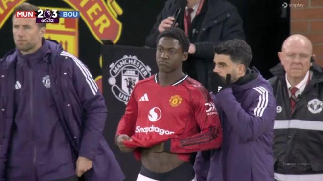 北京时间12月16日,英超第16轮比赛,曼联主场4-4憾平伯恩茅斯。本场比赛,曼联虽在主场占据主动且4度取得比分领先,但比赛依旧是你来我往,客队次次都能顽强扳平。最终,曼联只能接受主场大比分平局,球迷多半会把本场比赛视为“丢掉了不该丢的两分”。然而,让球迷郁闷的还不只是比分。比赛当晚,科比·梅努的哥哥乔丹·梅努现身老特拉福德,却被拍到身穿一件黑色T恤,上面用极简字体印着一句直白口号: “放梅努离队(Free Kobbie Mainoo)。”照片由自由记者阿达姆·哈拉赫发在X平台上,迅速引发热议。尽管梅努本人对转会传闻始终保持沉默,但哥哥如此公开“喊话”,若兄弟俩心意相通,留给阿莫林的时间恐怕不多了。本场比赛,阿莫林在第61分钟让科比·梅努替补登场,而本赛季英超他仍未首发过一次。在最后的30分钟时间内,梅努的表现中规中矩,贡献了1次关键传球和4次解围,再无其他亮点。随着1月冬窗转会的临近,球员本人或许还能忍,但家人显然已经坐不住了。科比·梅努的哥哥乔丹·梅努已经在用行动隔空喊话曼联管理层,希望曼联能在冬窗放人。据悉,意甲那不勒斯、西甲皇家马德里、德甲拜仁慕尼黑都对梅努表达过浓厚的兴趣。而球员本人则希望能加盟一支能稳定踢上比赛的球队,以便参加明年夏天的2026年世界杯。